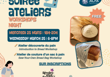 25 Mar 2026 au 25 Mar 2026 École Desrochers (entrée Nord)Découvrez pendant 1 heure les différentes facettes du pain au levain.