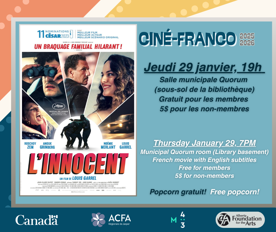 📍Salle municipale Quorum, au sous-sol de la bibliothèque de Jasper