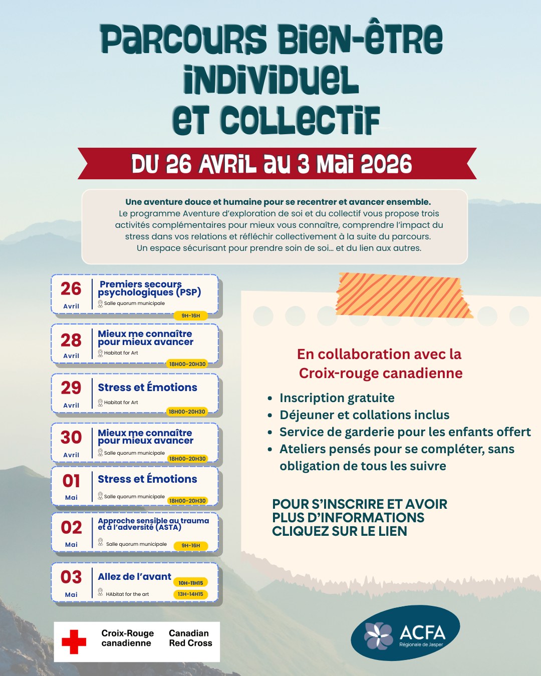 🌟En collaboration avec la Croix‑Rouge canadienne, nous vous invitons à une semaine d’ateliers gratuits pour prendre soin de vous, mieux vous connaître et avancer ensemble.
