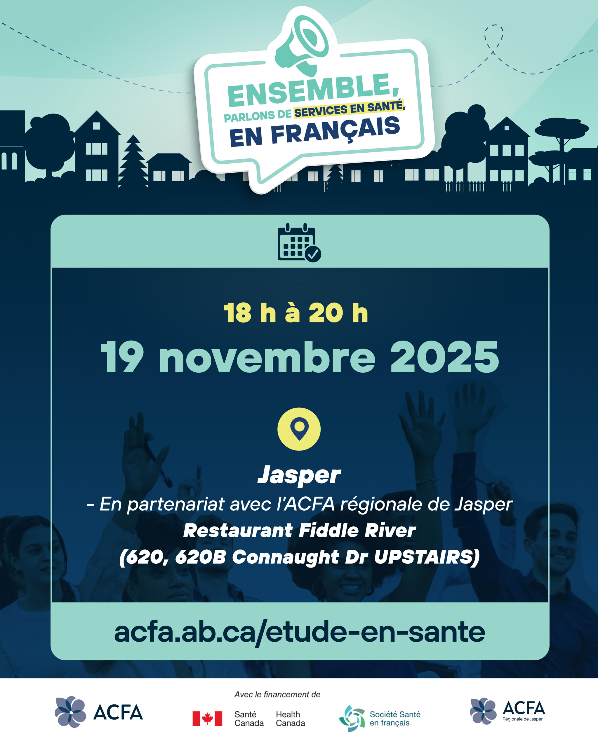 - 19 novembre 2025 – En partenariat avec l’ACFA régionale de Jasper, Restaurant Fiddle River, Jasper (620, 620B Connaught Dr UPSTAIRS) – 18 h à 20 h